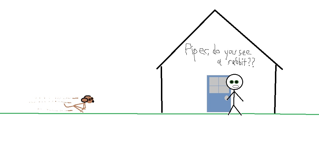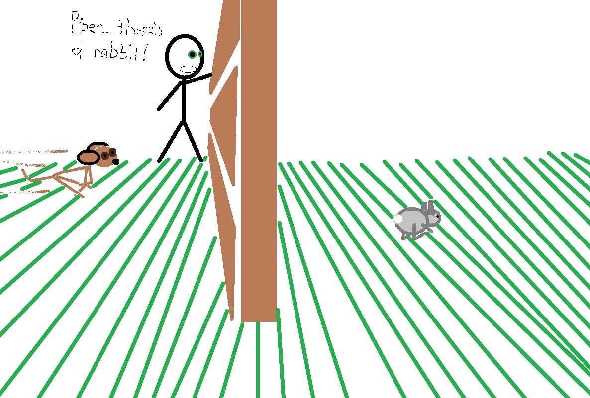 If I’m near the fence, she’ll come to me, thinking I have a rabbit to show her or something.