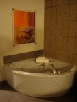 The shower was acceptable. They didn’t try anything fancy (like a rainfall shower), but what they offer is comfortable and effective. Another “plus” to the rooms is the addition of a bathtub. Location might make you a bit uncomfortable, but if you like a hot tub, you will like these rooms.