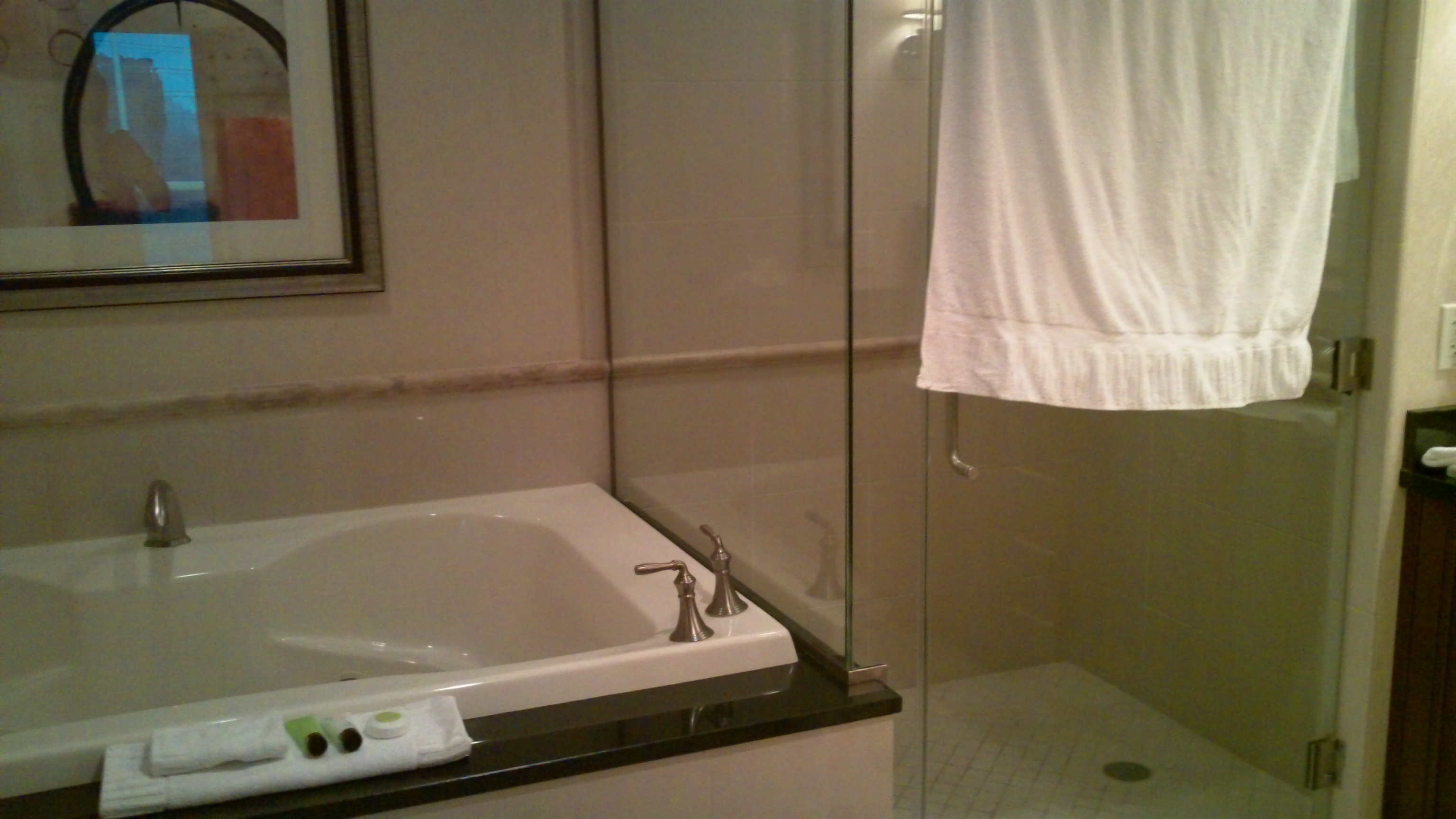 The first thing you’ll notice is the gated entry which offers a sense of security. The next thing you’ll notice is the valet, which I’m personally not a fan of because I can park the car myself. However, having a valet is convenient and trouble-free. The folks performing the valet service were professional and courteous. Soon, if you haven’t already, you’ll notice that the towers are a few blocks away from the Vegas strip, which may or may not be a good thing. Being in tower 3, it was a long walk just to get to the MGM casino (I’m guessing half a mile, no kidding), an even longer walk and/or taxi ride to get to the heart of the strip. There is a monorail you can take from tower 2 which is inexpensive and as convenient as taking a monorail can be. What I liked about the towers of MGM are that when you want to sort of “escape” the Vegas lights, these towers offer that kind of feel. A retreat, if you will. And like I said, the views are spectacular and the rooms themselves are quite nice.