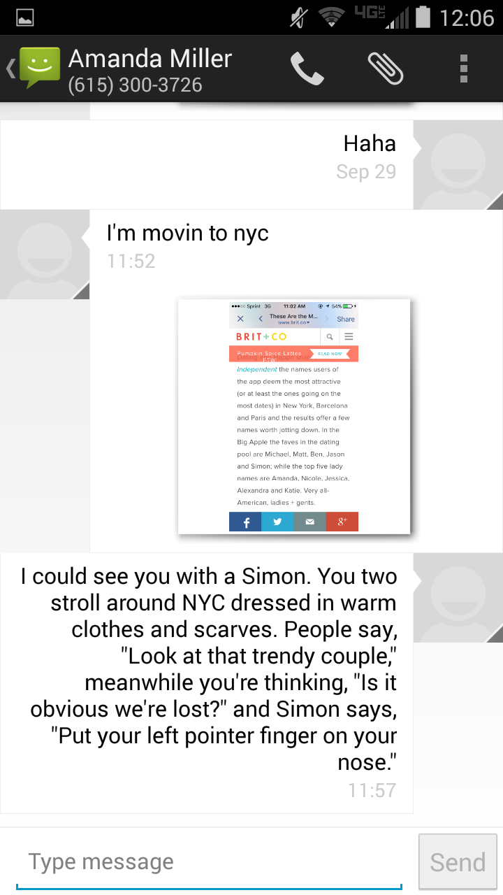 Got this text from a friend of mine recently. She included a picture that shows the names of people that get the most dates in NYC. Because her name is on the list of girls, she joked that she’s moving to New York. (Names on the list are… guys: Michael, Matt, Ben, Jason, and Simon. Girls: Amanda, Nicole, Jessica, Alexandra, and Katie.)
