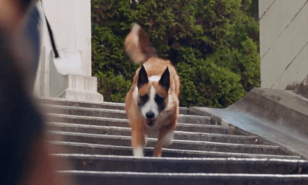 The star of the 30-second spot is a dog which looks to be some sort of terrier, one of the top breeds in London (where the ad agency is based). Perhaps a cross-breed of a border terrier and a bull terrier? Just a guess.