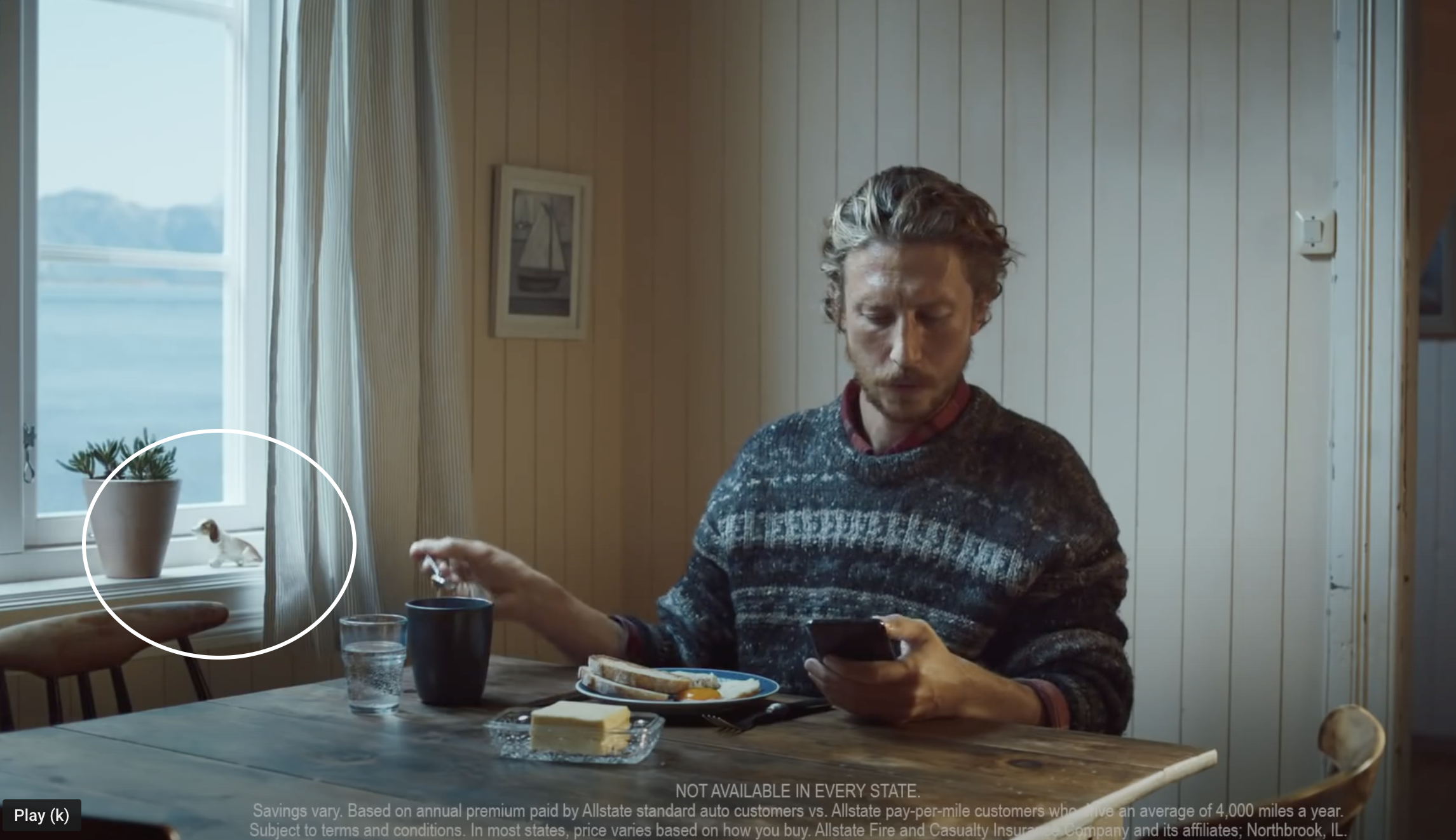 2. Am I wrong or was the woman in the house not in the early showing of the Allstate Island Commercial but was later added in?