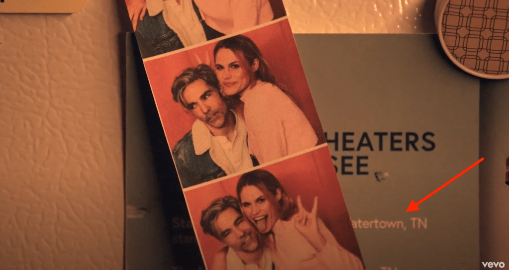 The music video was shot by Running Bear Films somewhere near Watertown, TN, which is about an hour east of downtown Nashville. This is based on the clip of their photos laying on top of a theater advertisement listing Watertown, TN as a location.