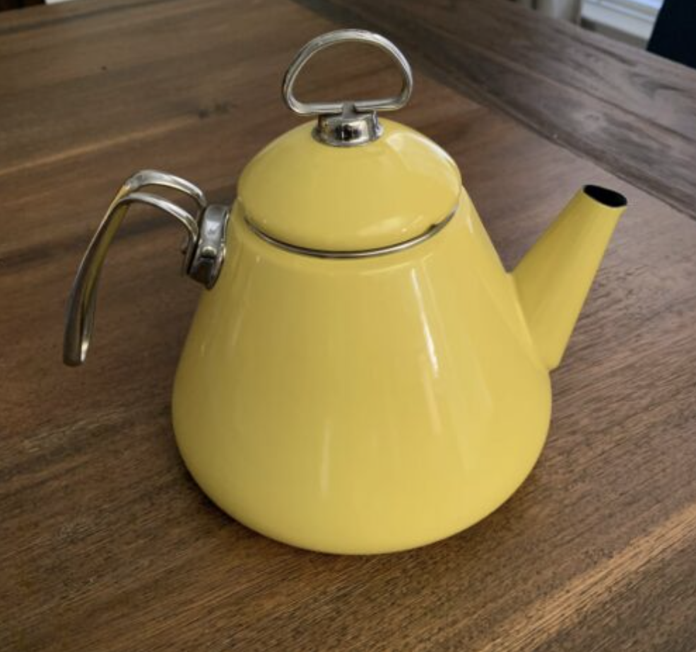 If you’d like to buy a kettle like this, I think you’re in luck! It’s a Le Creuset Kettle Kone. You can go directly to the Le Creuset website but the vintage kettle kone is not available there. However, there is good news: you can find still find the retro kettles for purchase on a few websites.