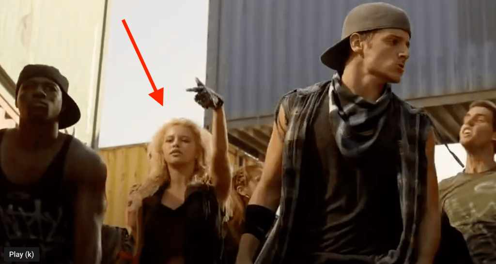 Angeline Appel is actor/model who, among other things, appeared as one of the Mob dancers in Step Up Revolution (2012). Here is a screen grab from a well-choreographed container dance scene.