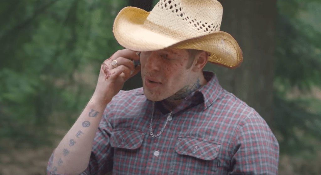 Forehead tattoo. “Live and Die in a Dream”.