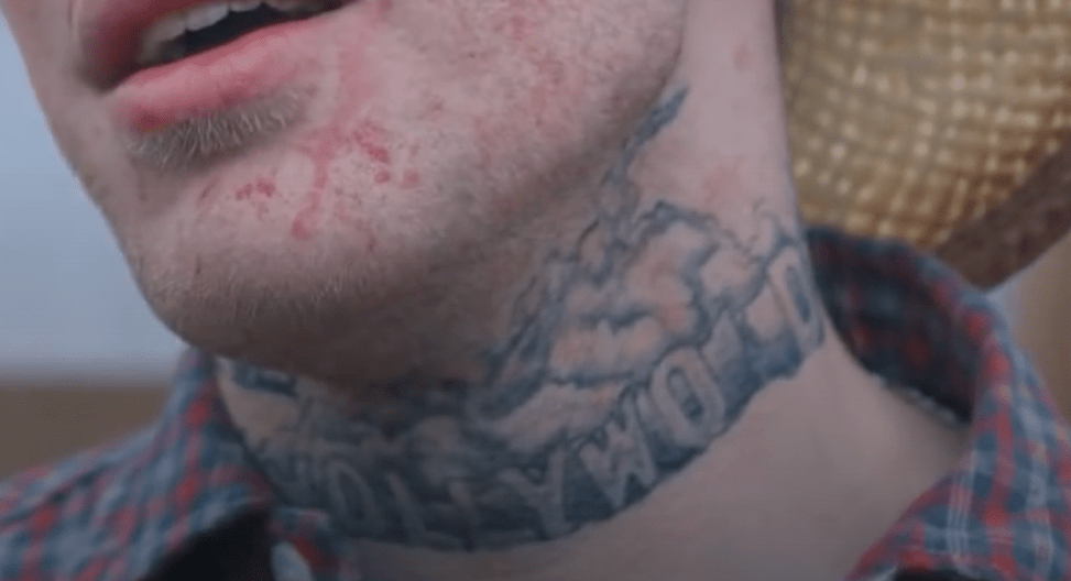 Hollywood neck tattoo.