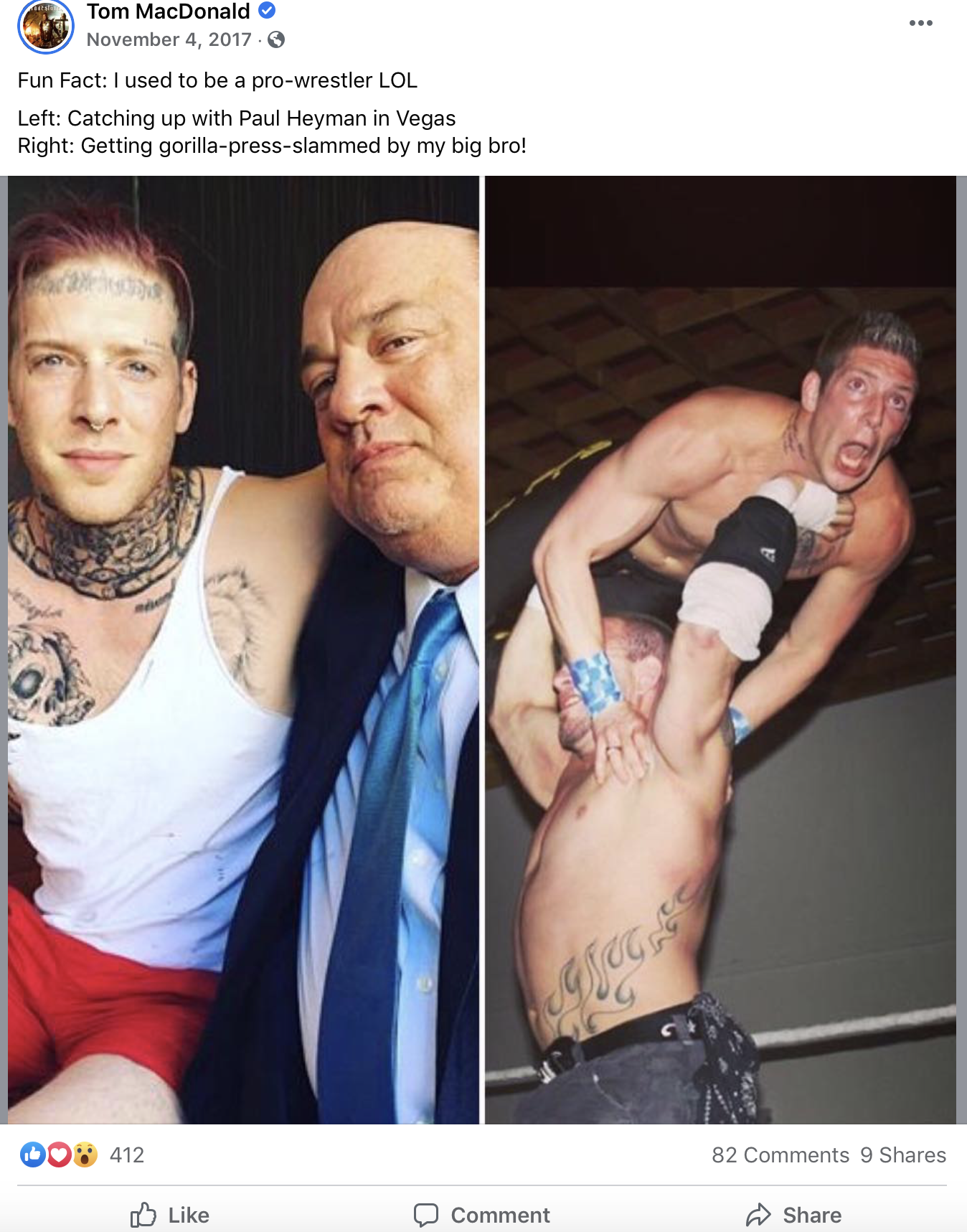 Fun fact: Tom used to be a pro wrestler, according to this Facebook post from 2017. I can say from experience, body slams are disorienting, to say the least!