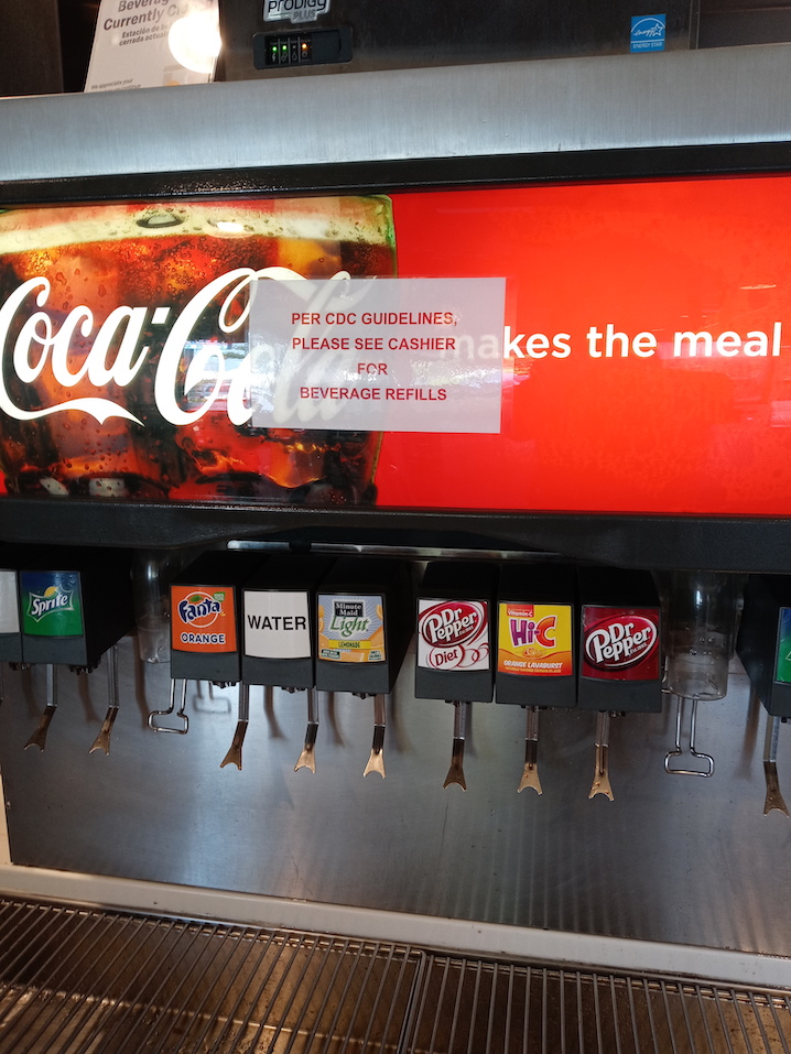 The following two pictures… exactly how does “take this cash that a thousand people have touched” and “here’s my cup so you can touch it and give it back to me” help NOT spread the coronavirus?