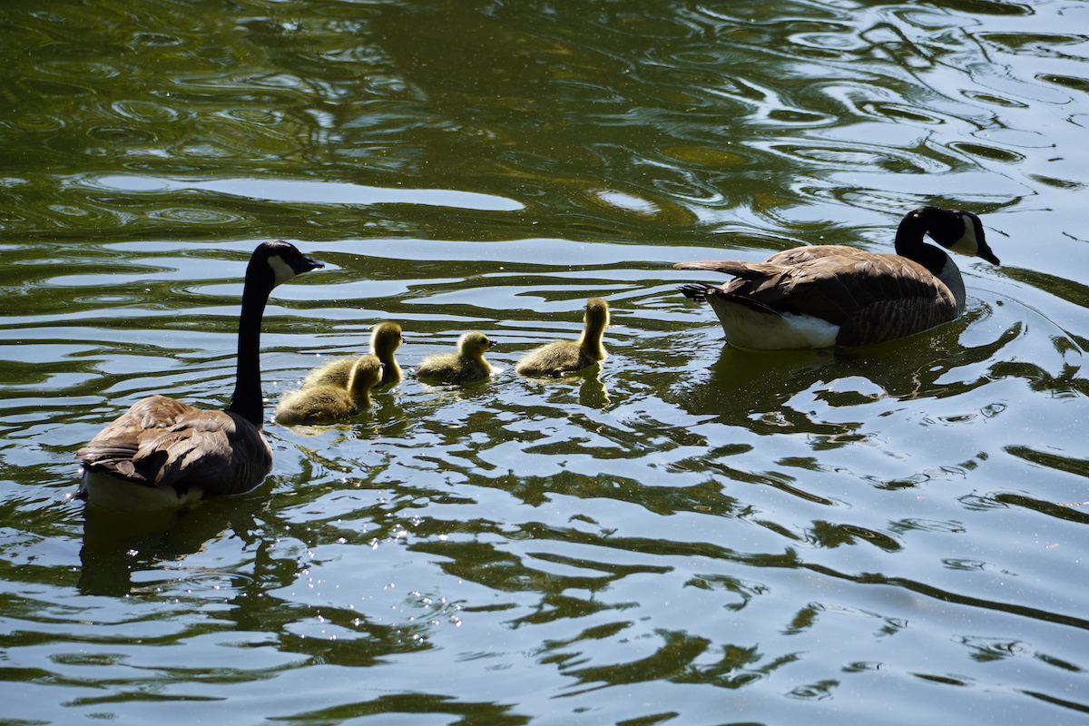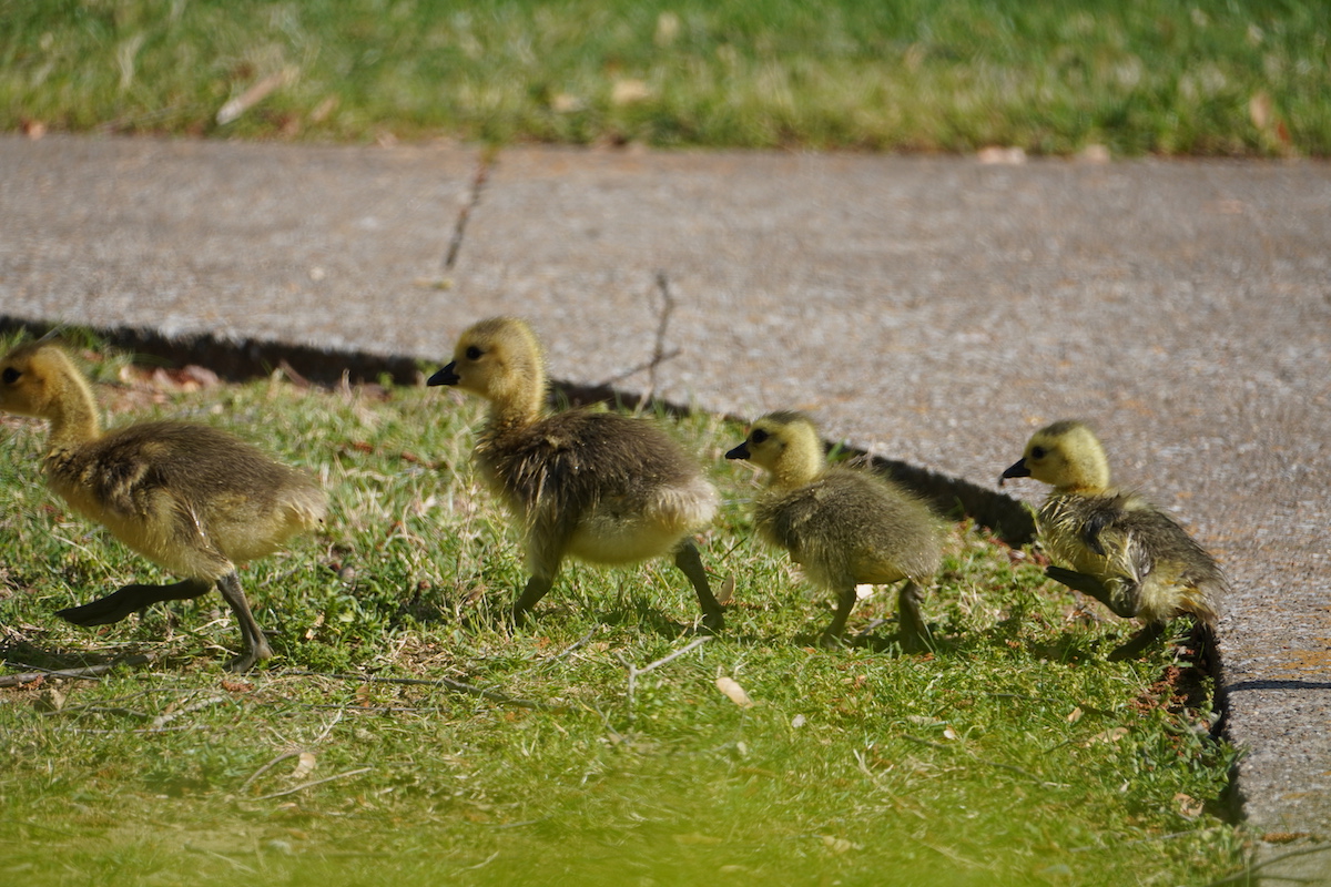 But yesterday she was not privileged to chase a rabbit I saw on the way back from visiting my friend who has newborn geese wandering around her apartment complex. These are the geese…