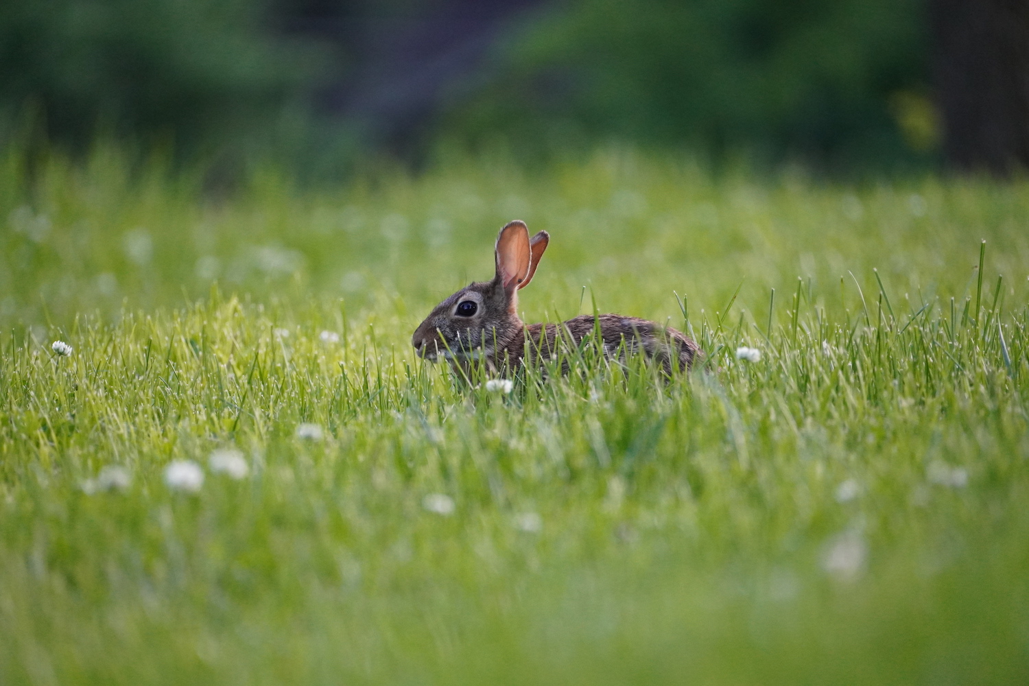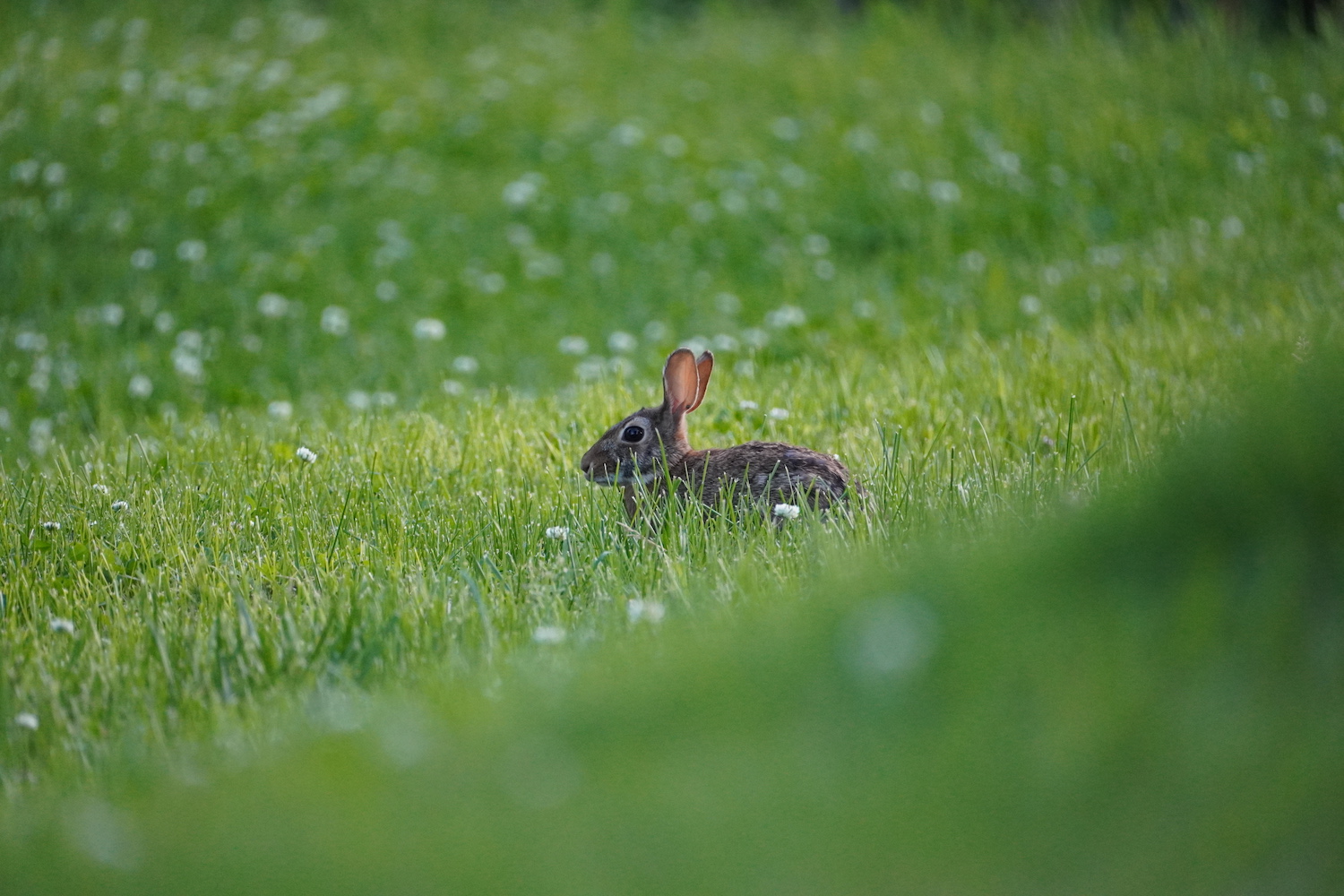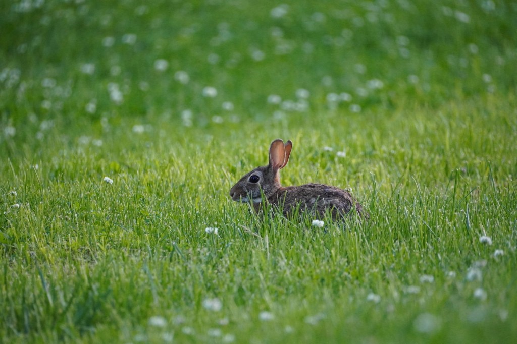That was just a few of the geese. This post is about bunnies, though! More specifically, one I saw yesterday. I was riding my bicycle back home looking like a crazy man (no pics to prove it, though) with my helmet from Vietnam, glasses from Thriftsmart, and a bike from the 1970s. I’m sure I’m a site to behold. I glanced over to my left and saw a rabbit frozen in disbelief that anyone would look like me. So I quickly stopped and unpacked my camera. I knew I needed to be quick and quiet. At any moment the rabbit might hop away, so this recon mission had an expiration. Thankfully, the bunny stayed long enough for me to get some photos. Take a look!