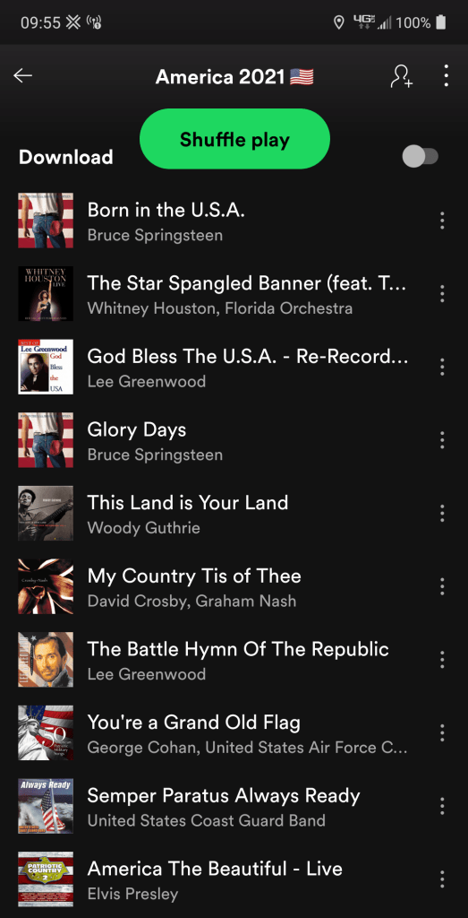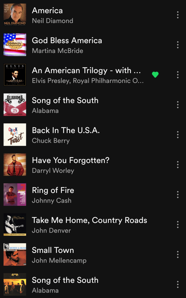 I’ve put together a playlist that is sure to be the perfect soundtrack for your Independence Day fireworks show. Of course, there are plenty you can find on Spotify, Apple Music, and other internet searches but none will get you in the spirit quite like this one 🙂 Check out the songs below for over an hour and a half of patriotic American music… you can also find this playlist on Spotify here. God bless America!