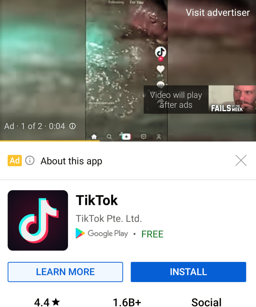 I can’t find the TikTok ad anywhere but if you’ve seen it, you know exactly what I’m talking about. It seems to pop up a lot when I open up a YouTube video. Here is a screengrab.